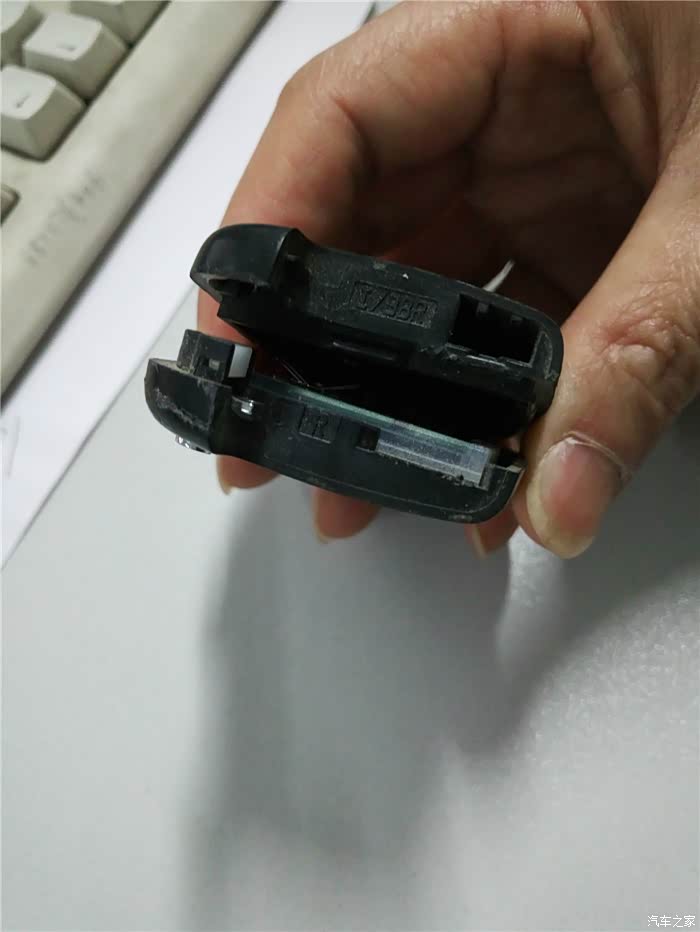 分开钥匙主体,一边是经过防水处理的芯片部分,另一边就是电池安装部分。