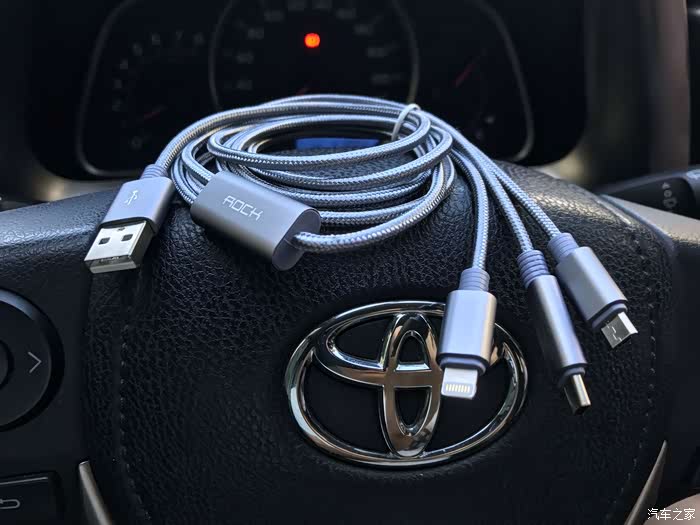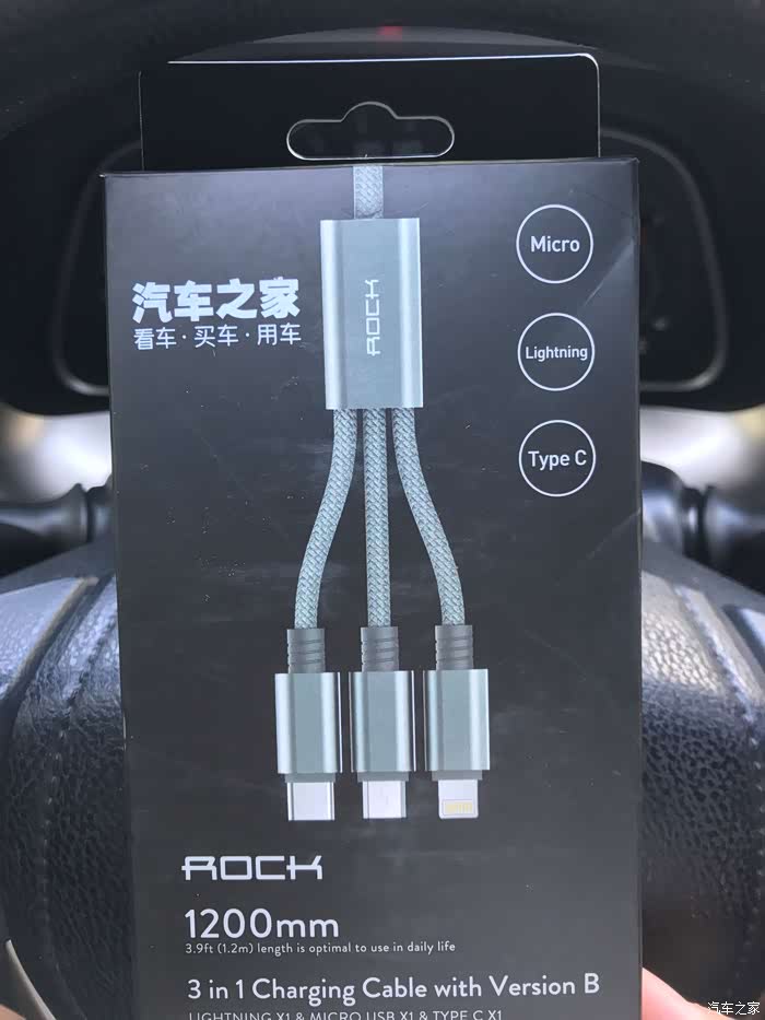 一拖三充电线,包装上方还有汽车之家logo,很有定制感