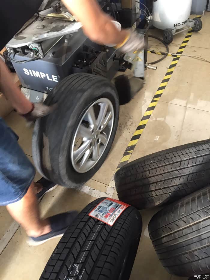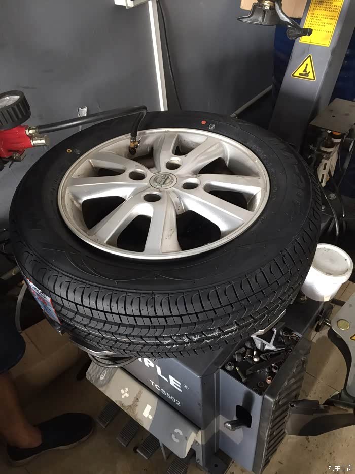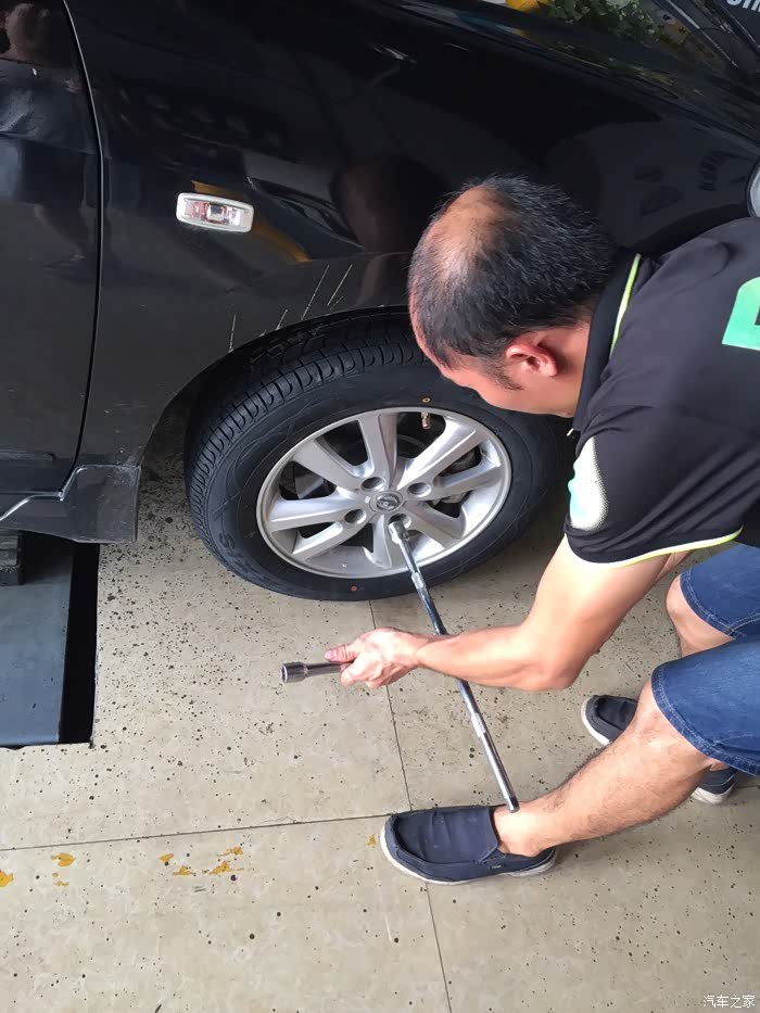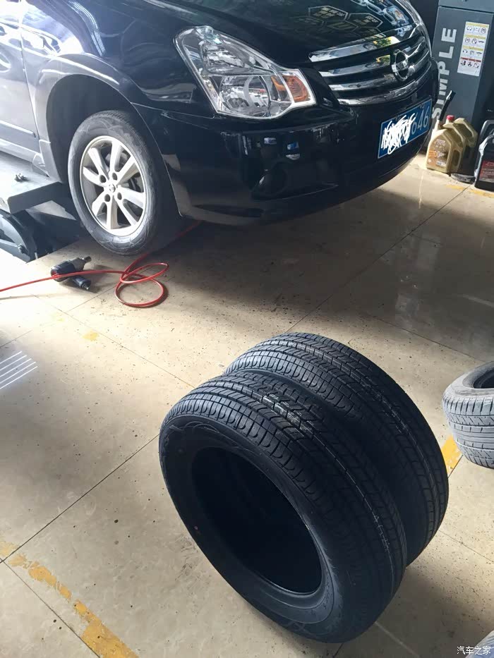 四仔店配的轮胎不行了。不到两年前两个轮胎已经开始老化了。出现很多龟纹。马上十一,想来想去还是改进换前两个轮胎先。在湛江市跑了很多家轮胎店问价,真黑。轩逸原装牌子轮胎一个就要380元。从赤坎问到霞山最低也要350才能换一条。后来听同事说要不上淘宝问问。最低包安装也要320还是天猫店。还要当心买到翻新轮胎。最后还是跑到海田车城实体店砍价。轮胎老板实在顶不住我烦。叫我用途虎购买及安装软件买轩逸原装牌子玛吉斯轮胎。还说现在买很便宜。回家上网问问朋友。说这个途虎还可以。轮胎是正品。就大胆试试。反正两个轮胎就439元。试试不行再骂人老板。轮胎到了。第一时间过去查。真的是正品。日期也很新。日期2317。以下发发老板安装图给大伙看看。