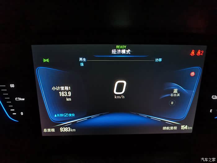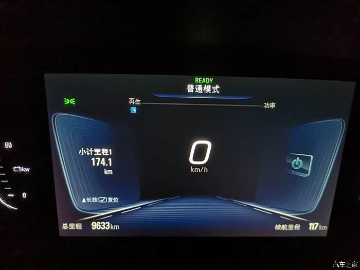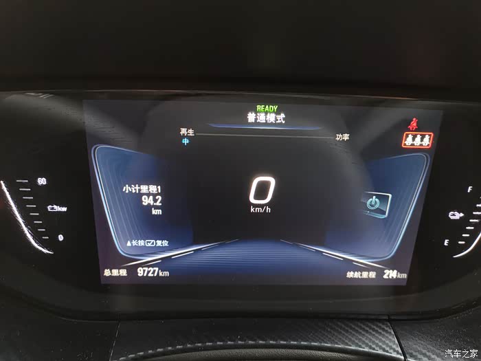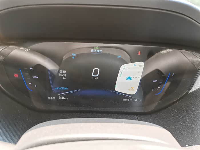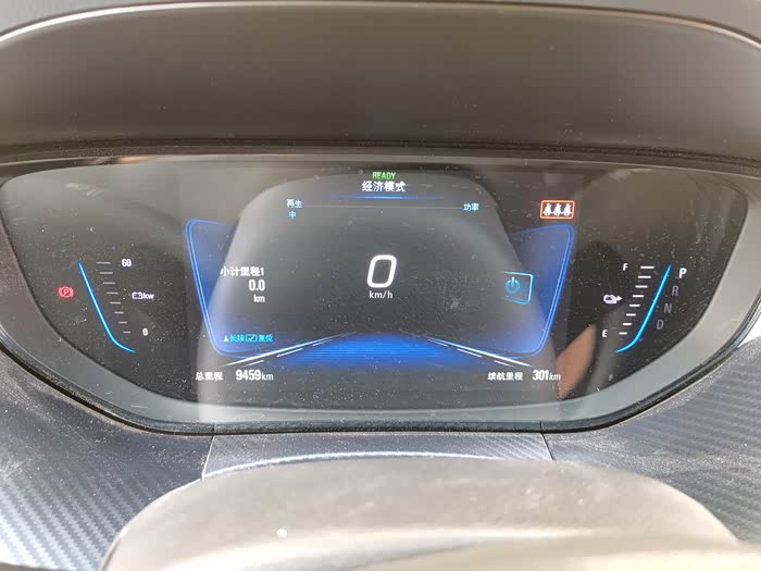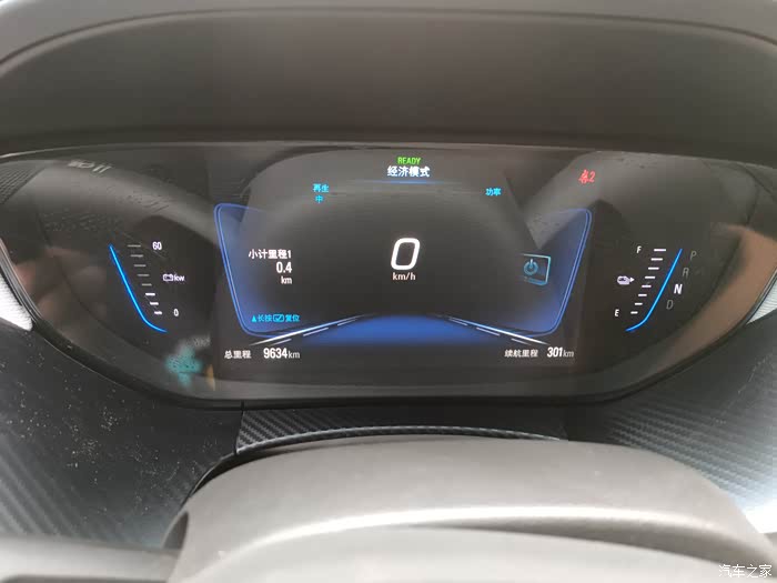 充满电,长按方向盘上的小计里程清零,满电显示续航里程301km