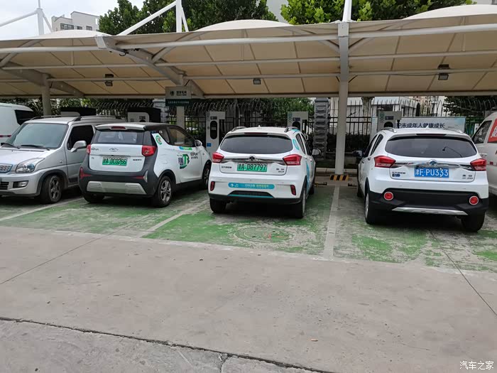 返回前来到附近的国家电网充电站补能,发现不少共享汽车在充电