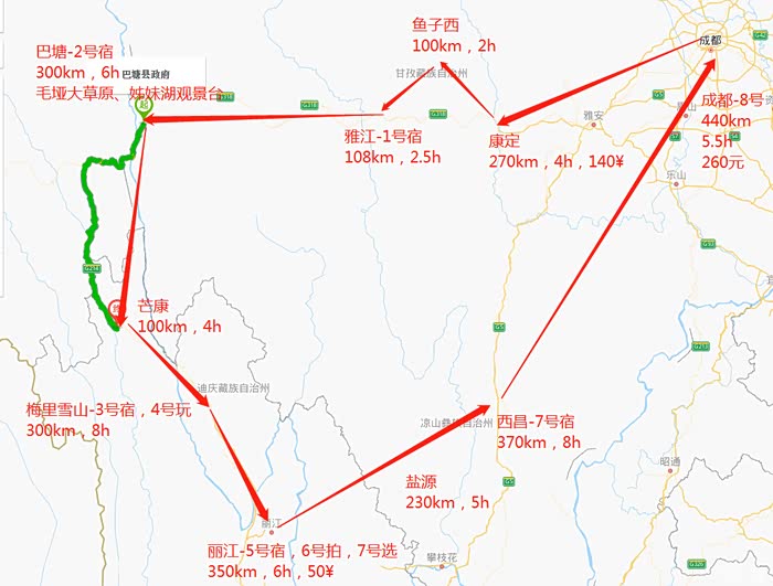 我们整个完整的行程再分享一下------成都出发川藏滇藏环线 ,全程2500+km