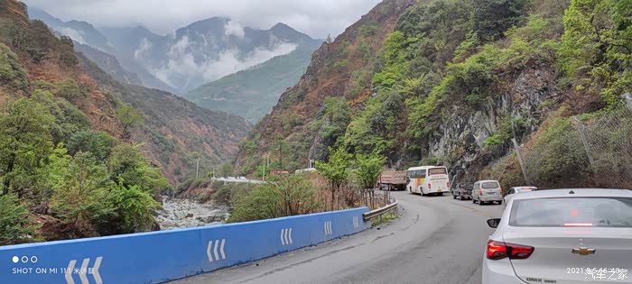 丽香高速并没有完全通车,中间还要下来走一段214国道,国道嘛,就难免堵车了。