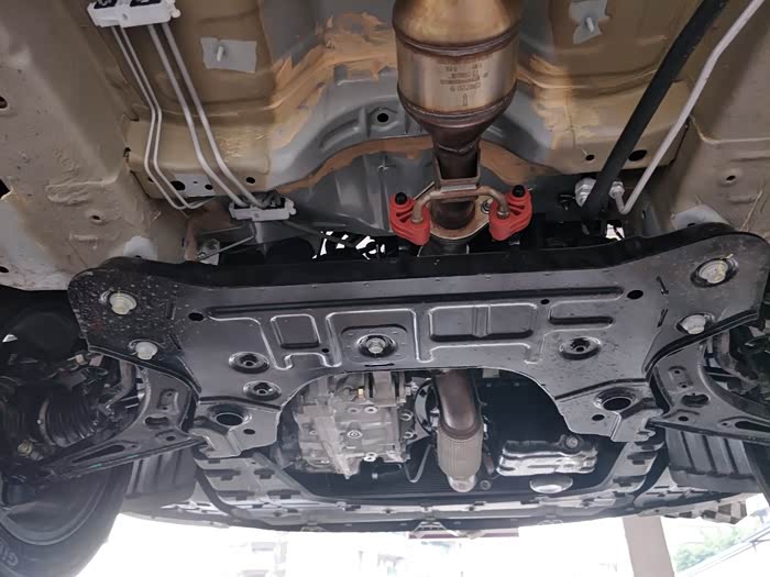 这么看,发动机感觉比欧诺的粗壮多了。。。这不,连机油滤清都目测要大点,大点,大点,并且还预留了安装下护板的螺丝孔。。。。