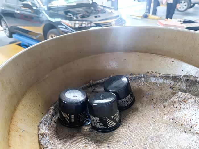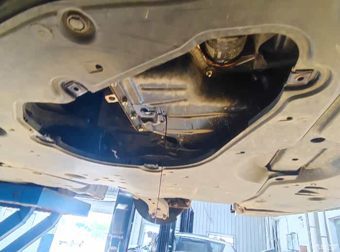 师傅把车底放机油的阀门打开以后,让他自己在这流光。可以去做别的事。这样有效提高工作效率。