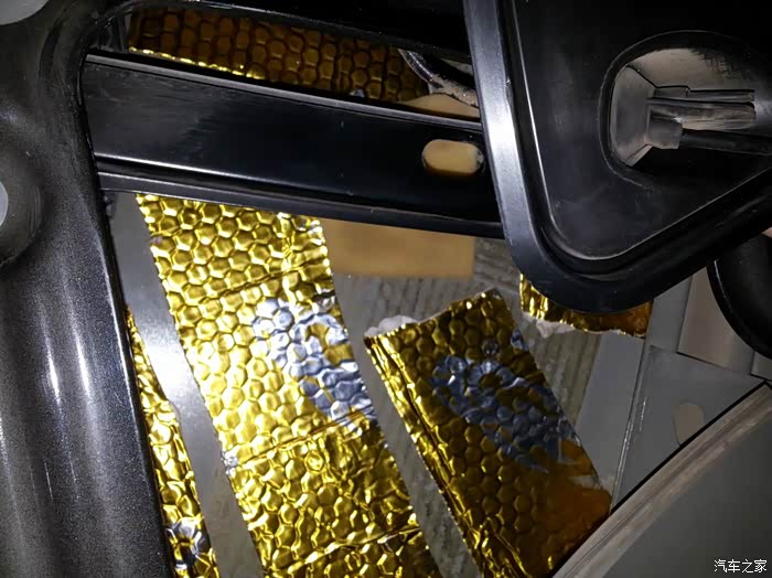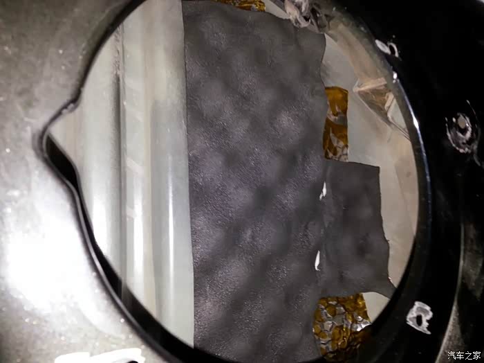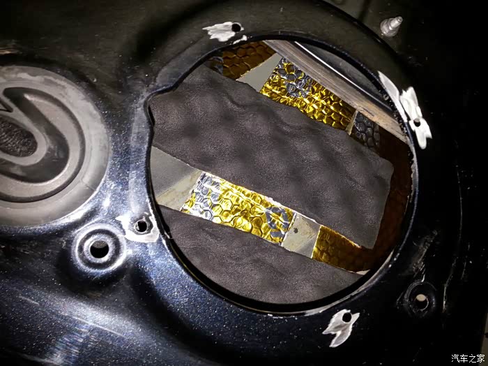 喇叭后面的位置我还加了些鸡蛋棉。。也许能让共振小些吧,自己瞎捉摸的,不知道管用不!因为是四门三层隔音,内层是条贴止震板,外层整张的止震板,然后在门板上贴满那种白色的吸音棉