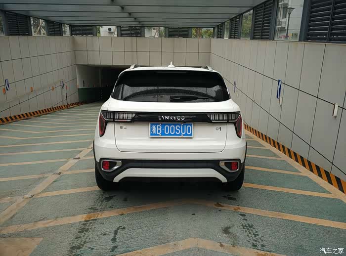 等雨水把车身上的玻璃水淋干净就把领克01往地库开...