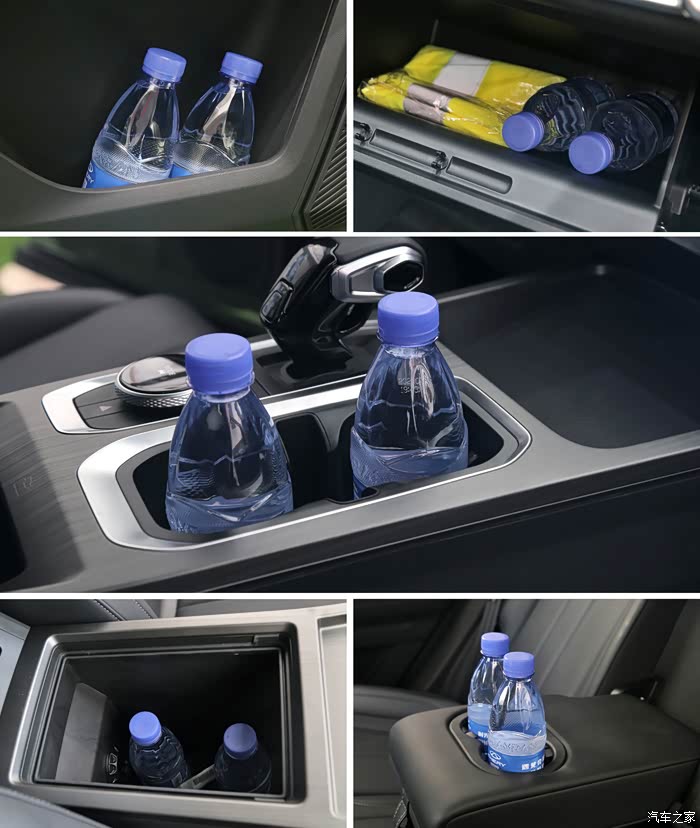 其实探索06在设计储物空间上也是别出心裁,例如眼前的扶手箱,就能体验出多元化,前面类似的卡槽实际是为抽纸巾设计的。