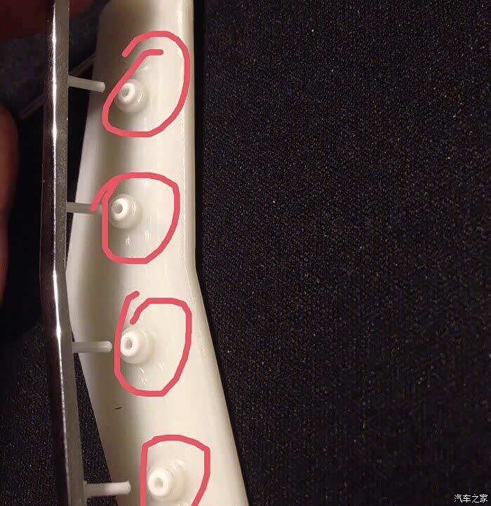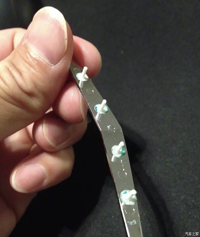 因为不拆开,原本v标后面的四个小柱也是烙融在后面的白色固定小板上,孔道是堵住的,而且断了v标重新修复上去的小柱,直径和后面固定板上孔道的直径不同,太细了!