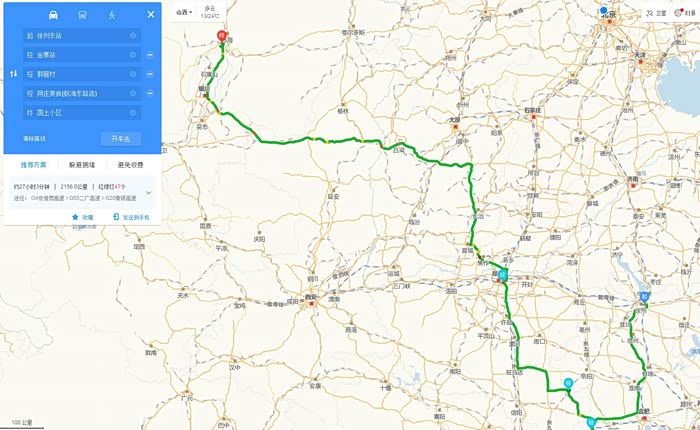 此次旅行的路线图,徐州-金寨-淮滨-郑州-乌海