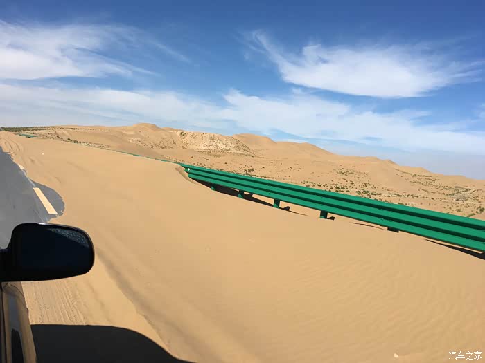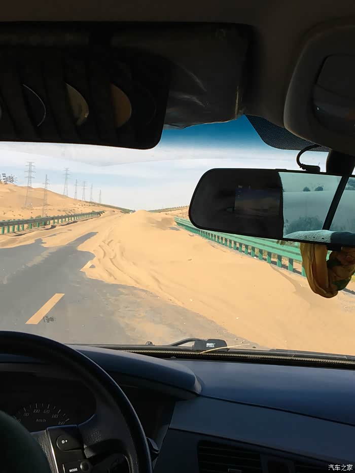 沙子已经吹到路上了,也没人清理,看上去应该是挺长时间才吹上来这么多沙子