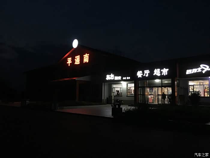 平遥南服务区的入口处的减速带及其的高,车速基本要10以下过,幸好搭的高速工作人员告诉了我,不然这么黑,按正常的40左右的时速过那么高的减速带都得对车辆造成损害。