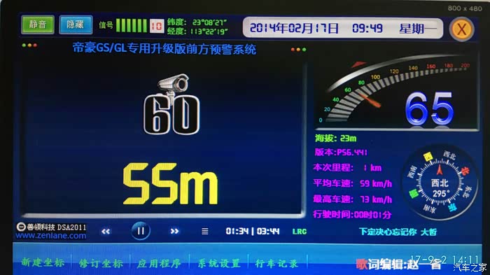 4.测试过善领各个版本,本来喜欢p57的,里面多个油耗功能,但是经过无数次测试,失败了,问题就是声音问题,太大了,无法调节;P56除了没得油耗这个功能外,其它一模一样,最终选择了p56 ,其它版本个人感觉不怎么喜欢,这里说下善领里面的音乐播放功能,既然有,我怎么能抛弃它啦,经过调试,可以实现音乐播放,不管英文还是中文,通通可以,我相信你们之前用的基本实现不了,识别不了中文名称;另外还有播放时间显示,以及歌词显示,声音可以通过屏幕左右滑动调节音量大小,上下滑动切换歌曲,点击时间的位置打开歌词显示