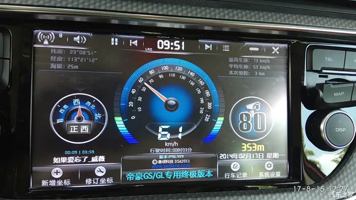 突然有个车友说只要凯立德3D旗舰版,不想要DSA预警系统+凯立德;这段时间一直都在测试DSA预警系统+凯立德组合版。还未尝试过在帝豪gs上面运行单独的凯立德旗舰版,昨晚22.00左右把单独的凯立德旗舰版调试后上车运行,导航卡里面的文件包由NaviOne重新命名为MobileNavigator