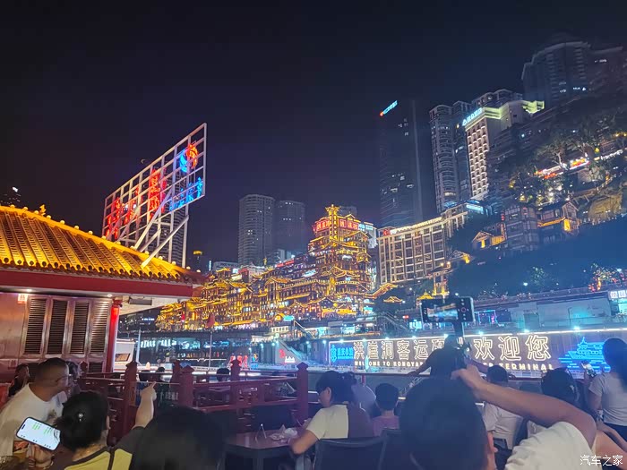 白帝城瞿塘峡景区,人很少,可能是自驾不太方便。延三峡之巅步道爬了一点点就原路返回。开车直奔重庆。很佩服自己把车开进了重庆市区,观音桥。不过走了两圈才找到酒店停车库,绕了一圈绕出去3公里,因为不是一层。酒店安顿好,下楼吃晚饭,重庆火锅,很好吃很辣,且没有拉肚子,给好评。吃完打车前往洪崖洞,手机自动定位出发位置,司机说到了,我们没看见车,于是爬了一层原来司机在楼上,司机告诉在重庆打车千万不能让手机自动定位出发位置,必须定位具体商铺,否则不在一层基本接不到人。到洪崖洞码头,赶了最后一班游船,转了一圈,船刚开周围就陆陆续续开始关灯了,重庆的景观灯关的有一点点早。