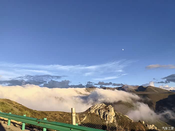 大概20多分钟,从海拔3200米爬升至海拔4000米雪山梁垭口,虽然一直吸氧,但是血氧掉至90以内,在雪山梁观景台摘掉氧气,走路踩棉花感和喝酒喝多了差不多,大概5-6分钟,拍照打卡,返回车内继续吸氧,问老婆感觉,她也一样踩棉花感,感觉飘。两个孩子啥感觉没有。