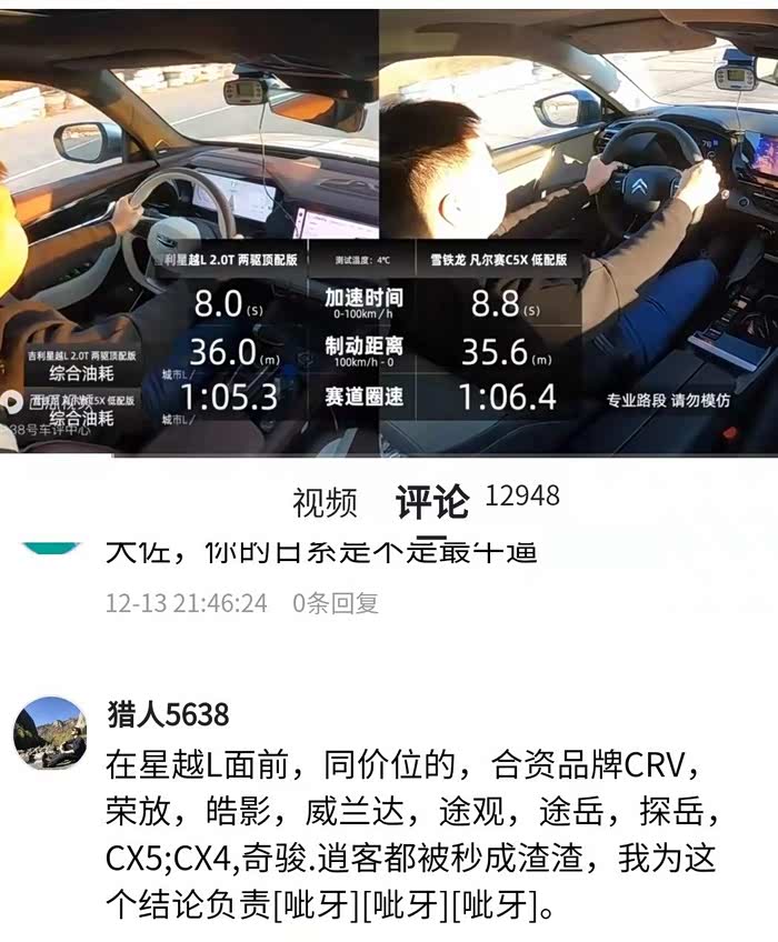 从空间舒适性还是星越L的加速成绩或者是刹车制动距离等等来看,都打到了我的心坎上,何况还有这么多广大车友们的评论作为佐证!