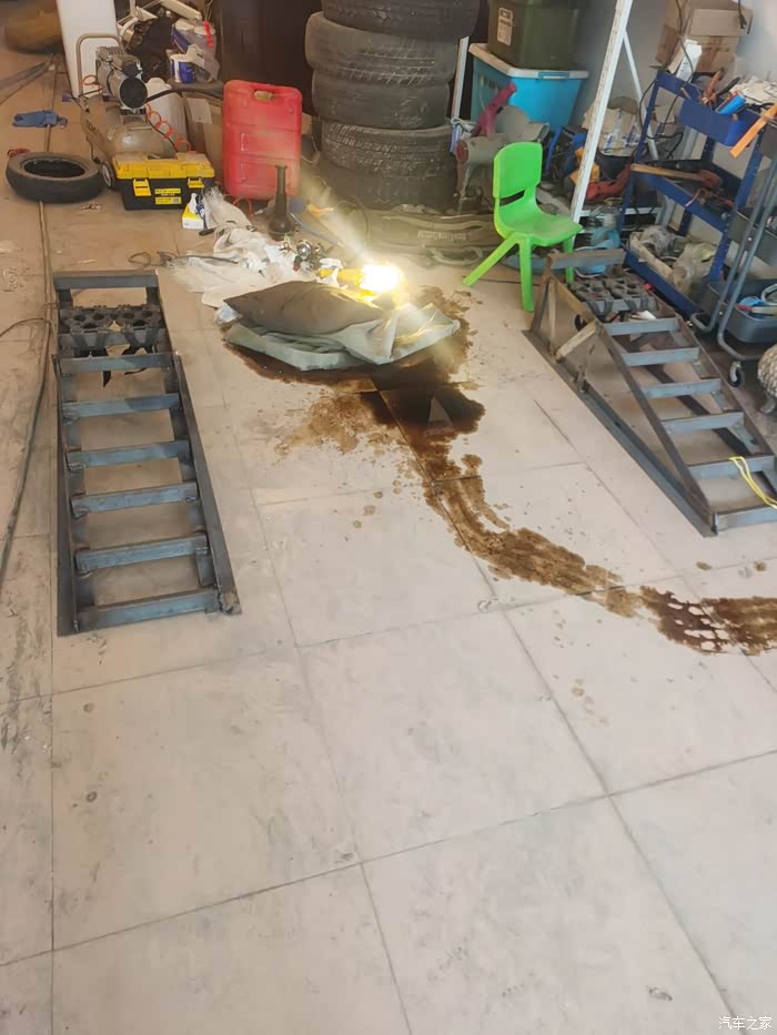 这车我自己保养几年了,地上洒的油是手机录视频没把接油盆放好。