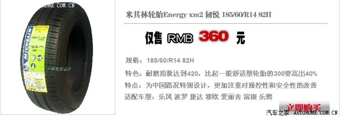 准备更换米其林韧悦2,网店不包邮360元一条。
