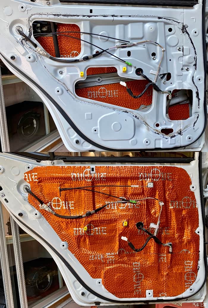 隔音止震板,可以起到抑制车门共振,增强钣金厚实度的作用,当然也会起到相应的隔音效果。为什么改装车门喇叭的时候,通常情况下都要做车门隔音呢?这是因为在车门上贴附止震板,会使车门形成一个密闭的箱体,将喇叭安装在密封好的门板上,就好似安装在箱体里的喇叭,声音效果表现会更出色。