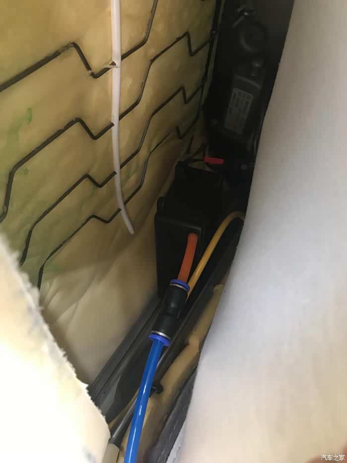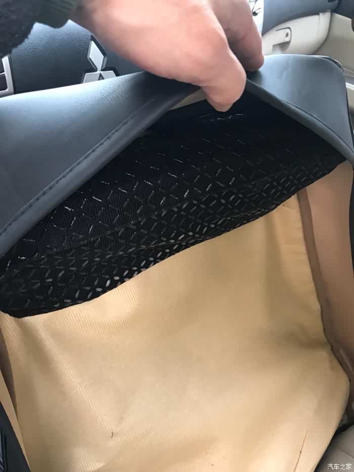 原车靠背包皮2侧,拉链拉开,漏出原形,把腰托气泵正好安装在里面,