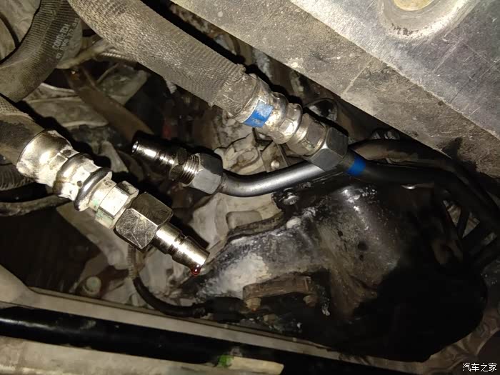 接上循环机油管,准备循环清洗,等量交换