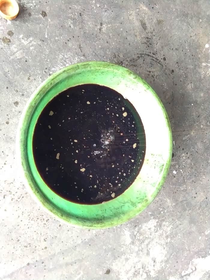 流成一条线,看着还行;到盆里就这么黑了