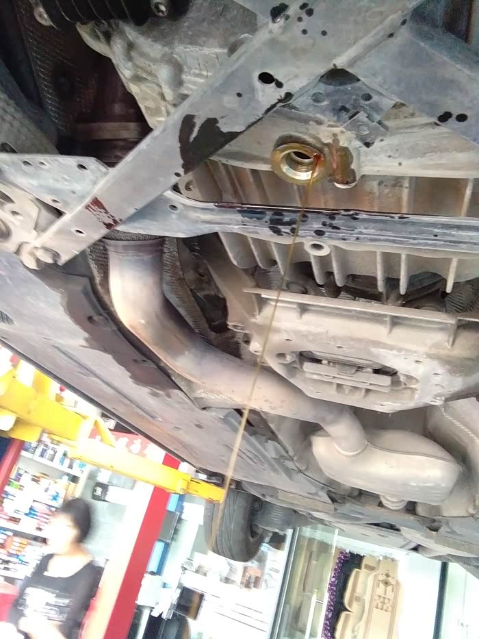螺丝拆掉,旧油流出来(师傅说里面还有一个塑料螺丝要钩出来,不然放不干净)