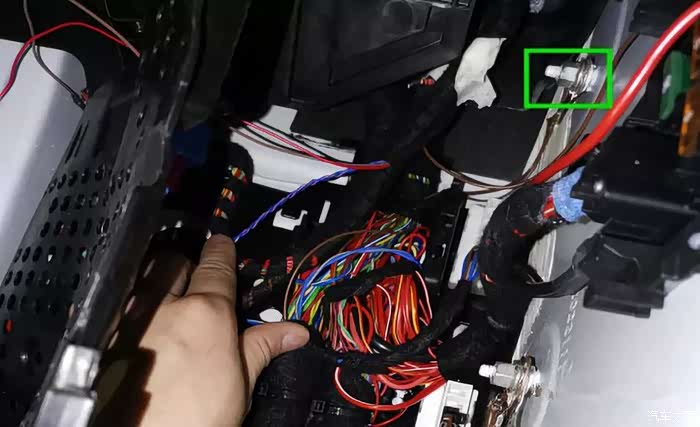 16.拆下保险盒后,此处有一颗10号螺丝拧出用胶布包好。(注:带常电不能接触接地线)