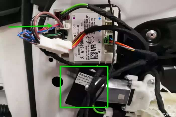 5.前门64色氛围灯转接车门模块3号插头以及模块固定位置