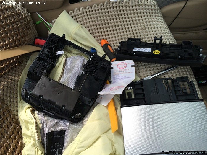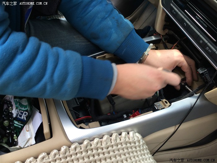 需要把原车的饰条拆来。这个位置就是安装中控扶手灯的