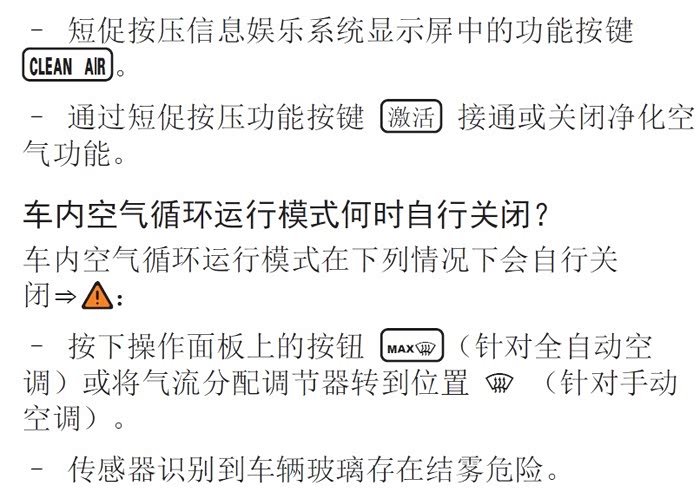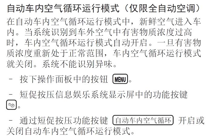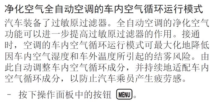 途观L 330豪华,手册上关于clean air 的设置是这样的,可是按MENU键进到的界面里,没有发现这些功能按键,求教大神