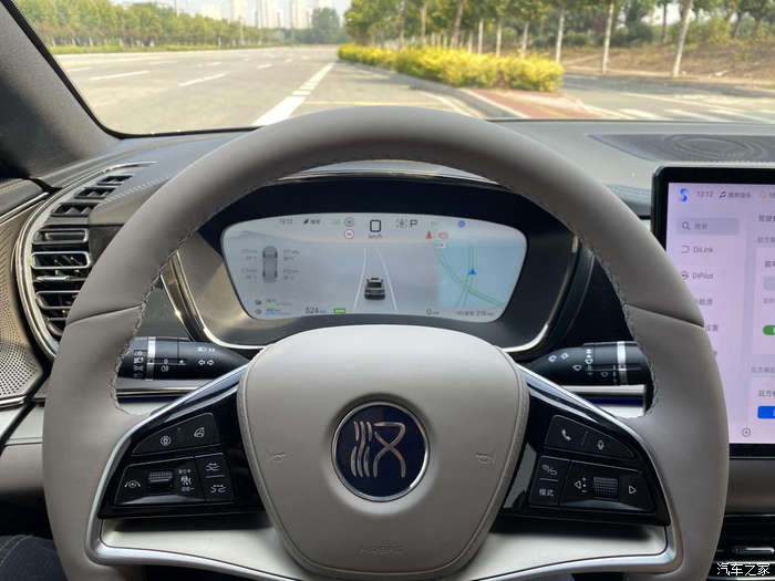 开着汉DM-i也比较轻松,方向盘很轻,转向也不需要很大的力气,转向精准,不会出现虚位的情况。它的可调节软硬的悬挂调校也偏于舒适,经过减速带或者未铺装路面时,也不会有明显的颠簸,坐在车里很舒服。