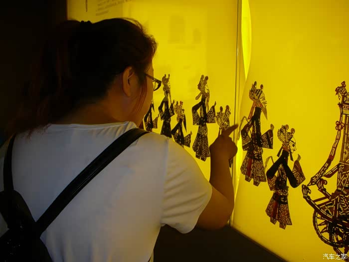 博物馆分为三个展区,A展区是入选人类非物质文化遗产的皮影。主要讲了皮影的起源,表演形式,皮影的制作等。据说每周二,周四还有皮影戏演出呢!可惜来得不是时候呀,只能欣赏一下陈列柜里的影人了。两个孩子边走边看。来到一个很大的陈列柜面前,指着里边的影人问我和媳妇:“爸爸,妈妈,这里面的影人哪些是文官,哪些是武将。”我和媳妇走进陈列柜,陈列柜里展出的是百官上朝的情景。我看了半天,也没有一点头绪。媳妇仔细的看了一会说:“你们看,影人的衣服是有区别的。衣服上画飞禽的是文官,画走兽的是武将。还有就是武将人物是用戏曲中的花脸表示的。”我和儿子认真的看了半天,果然媳妇说的头头是道。