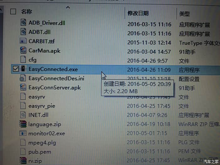 5、将原“EasyConnected”文件夹中的““EasyConnected.exe”改名为“MobileNavigator.exe”。这时车载导航再按原路径启动的程序就是亿亿连软件了。