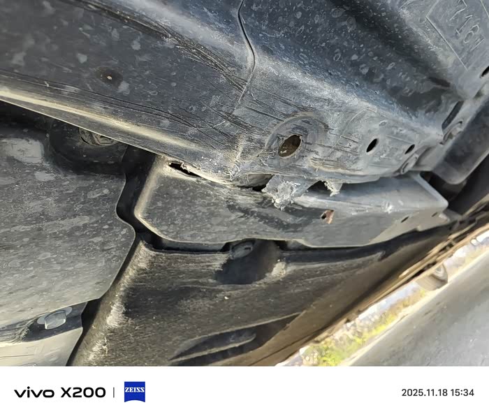 经过一小桥与路面连接处,树叶挡住了没看到凸起和凹陷,Duang的很大声,观察了下无液体泄露。过两天出保前检查,顺便问下维修师傅情况