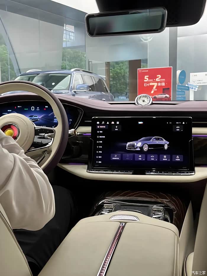 科技感十足,配备全液晶仪表盘、中控大屏以及 AR - HUD 抬头显示器,其中多媒体系统中控大屏采用卷轴屏设计,如同画卷般徐徐展开,充满了仪式感。这些科技配置的应用,使车内既具有豪华的氛围,又不失现代科技感。