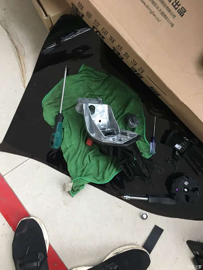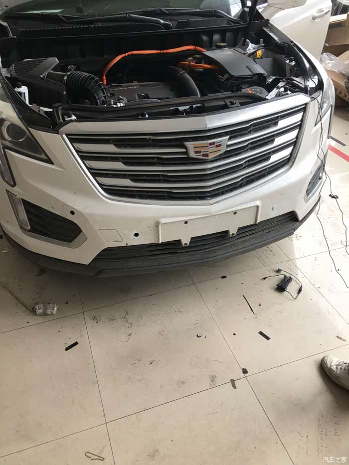 先打孔装前雷达。(4S说给我装的是原厂雷达,我一直以为会跟原车一样的内置雷达,等开好孔后,我的天啊)车子一下高档变低档,找经理理论了一下,他说他们4S装都都是这种,无语了。