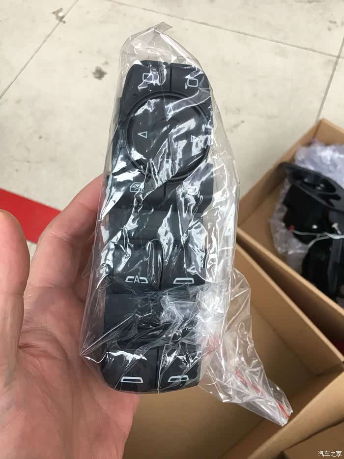 驾使位控制按键。少了原车的镀铬条,还减配了副驾的一键升窗功能。驾使位无法一键升副驾车窗,但不影响副驾的一键升降功能。(感觉这个产品应该是老款的),后来问了师傅说目前改装的市场上只有这种,也只能接受了。