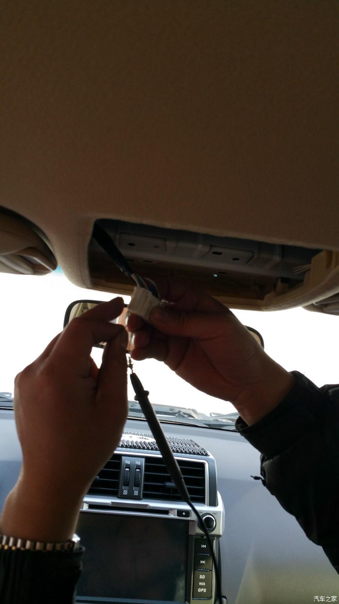 普拉多 安装行车记录仪后视镜一体机 顶灯常电完美安装