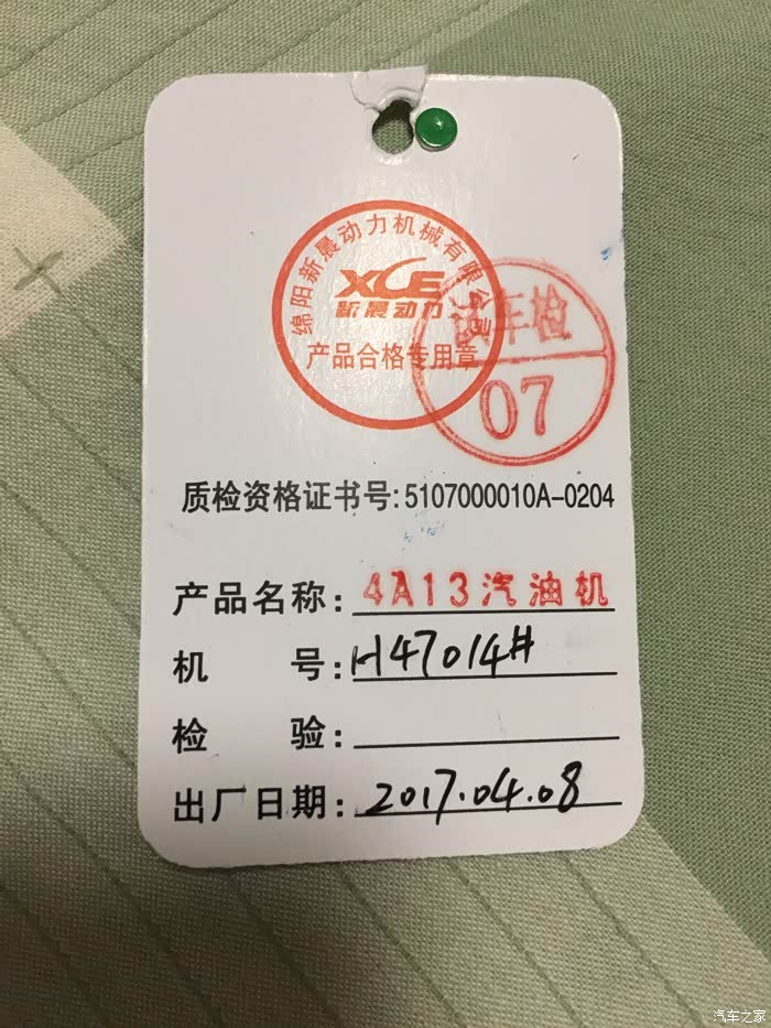确定确定了,吉利远景X1发动机确实是绵阳新晨动力的4A13。