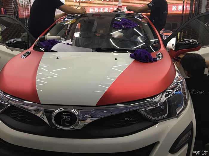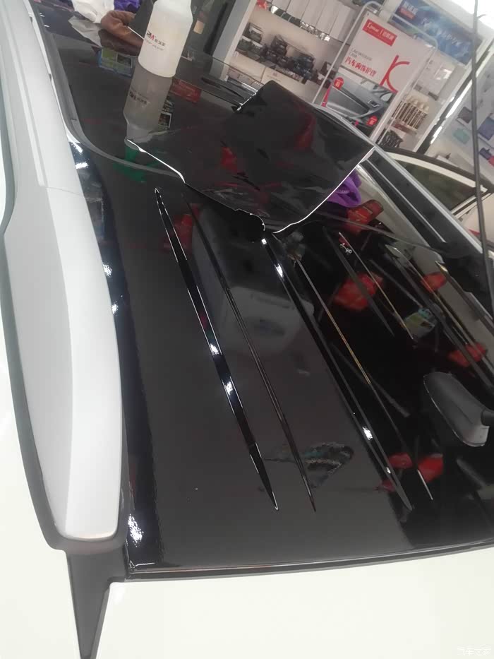 第二天开着我的小白去改色,黑顶和天窗变一个色