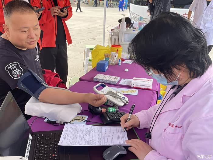 活动流程在有序中展开,现场签字、打卡留念的瞬间,笔尖划过的不仅是纸张,更是车友们对生命的承诺。抽血前的登记化验环节,医护人员的指尖在表格上跳跃,车友们则带着些许紧张又期待的神情排队等候。令人意外的是,两位平日里坚持献血的 “老将” 却在初筛时被 “拦” 了下来 —— 原来因近期忙碌未能好好休息,他们的体检数据暂不达标。看着他们望着同伴走向献血车时眼中闪烁的羡慕,甚至对着晕针的车友半开玩笑地说 “我帮你献吧”,那份未能参与的遗憾与急于奉献的热枕,让现场的空气都多了几分暖意。