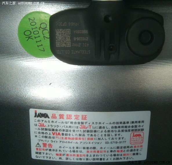 新装的胎压传感器,还有轮毂内标签,居然是日文的,唉