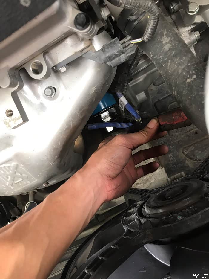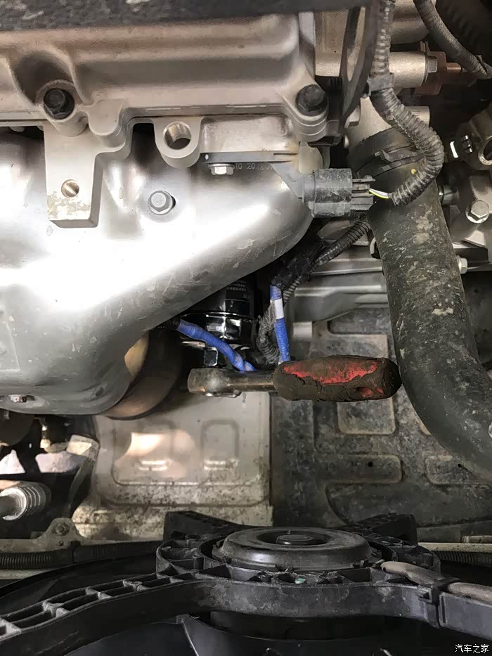 等了有半个小时左右开始拆机油滤清器这个位置从上面很好拆
