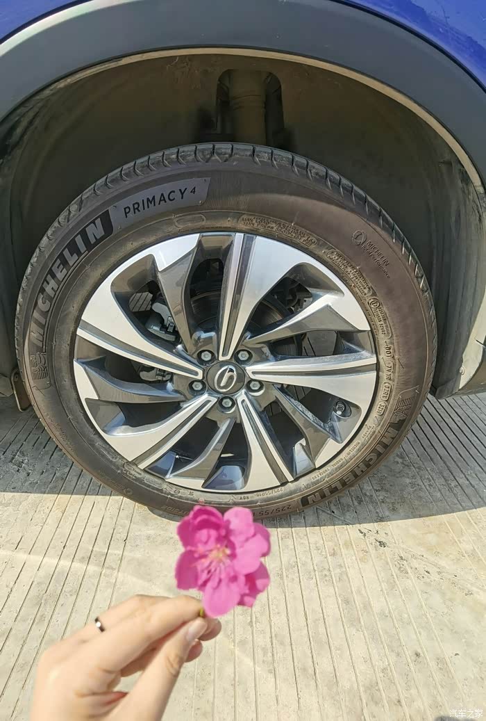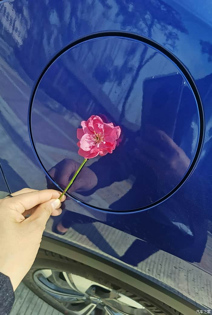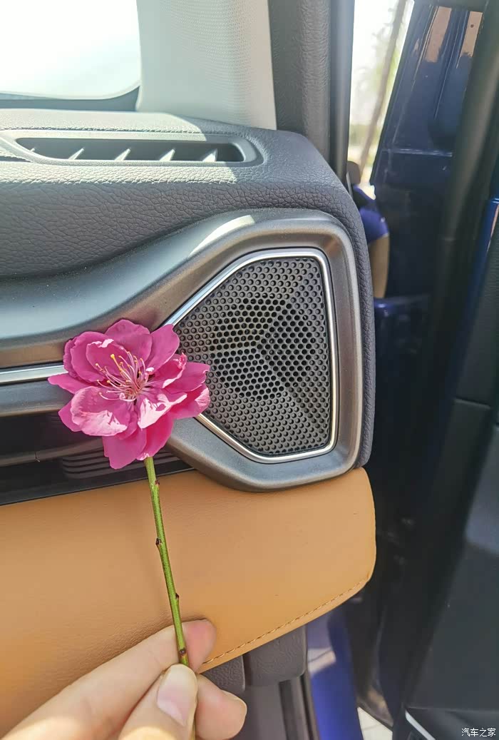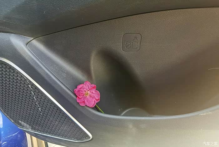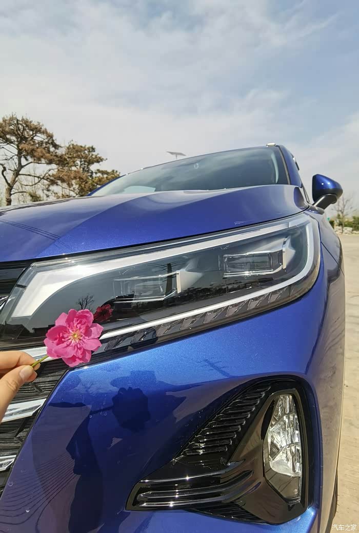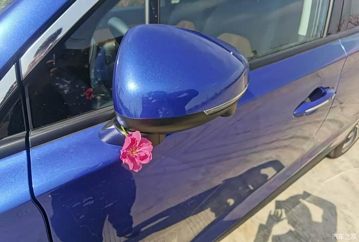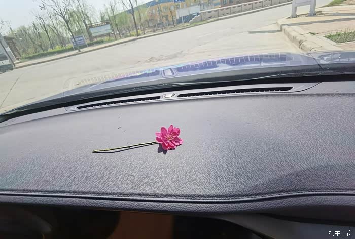 先来一张正面照,一朵花下的一台车