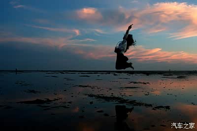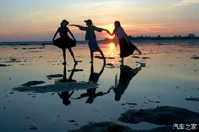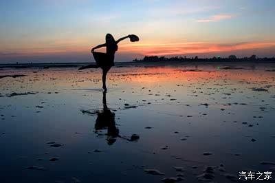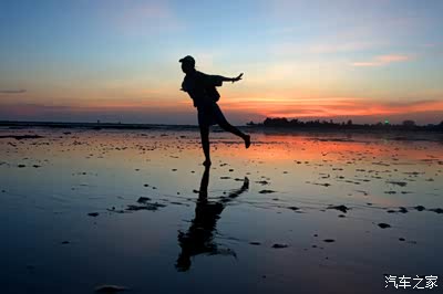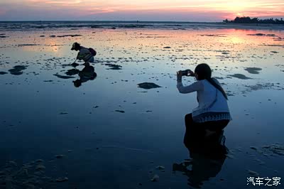 2015年10月6日,银滩。银滩当舞台,晚霞做背景,翩翩起舞。虽然没有玻利维亚天空之镜那么壮丽,但是银滩的天空之镜也有自己的秀美。