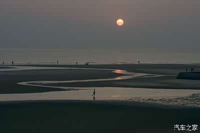 三得作品。海滩、海水、落日、蓝天构成一幅美妙绝伦的画面,是艺术创作的绝佳境地。