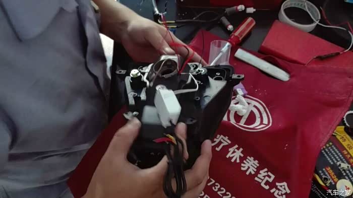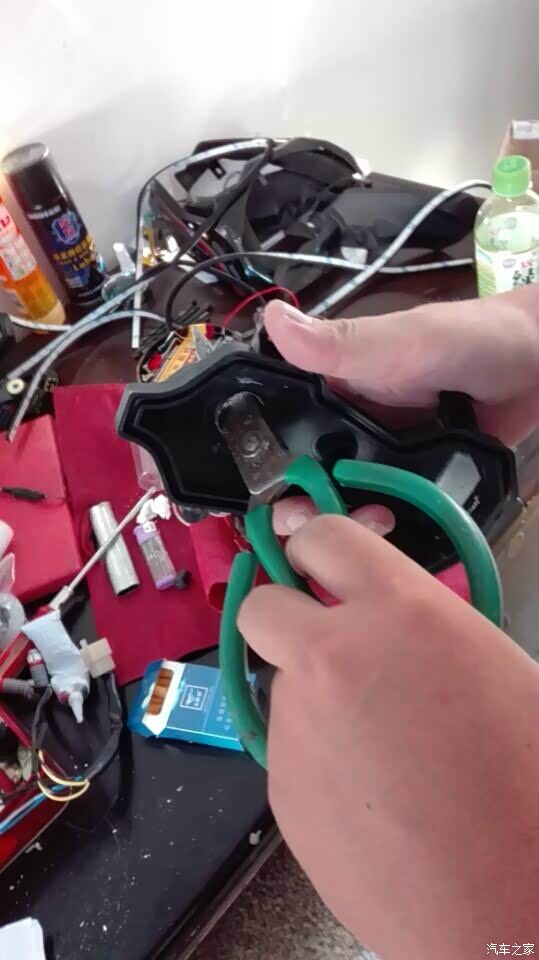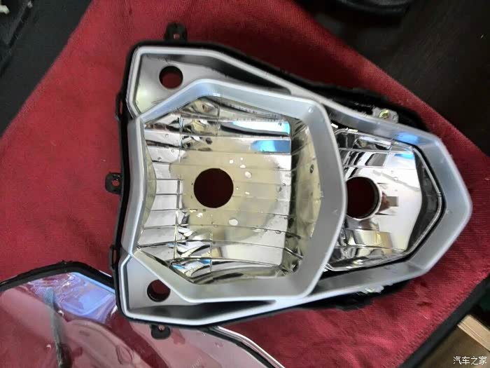 灯后座的原螺丝孔位和大灯固定孔位也要磨掉,不然总成安装不进去的。