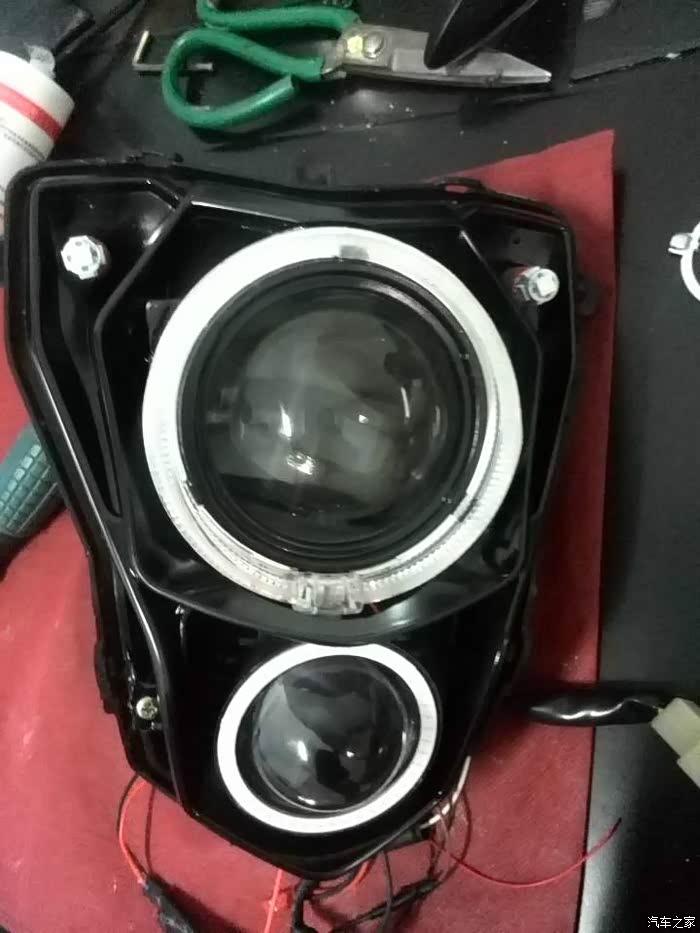 BJ300因为是马脸的关系还要做上下两灯,灯碗偏小,这一点给选灯上带来许多难度。2.8寸?太小啊